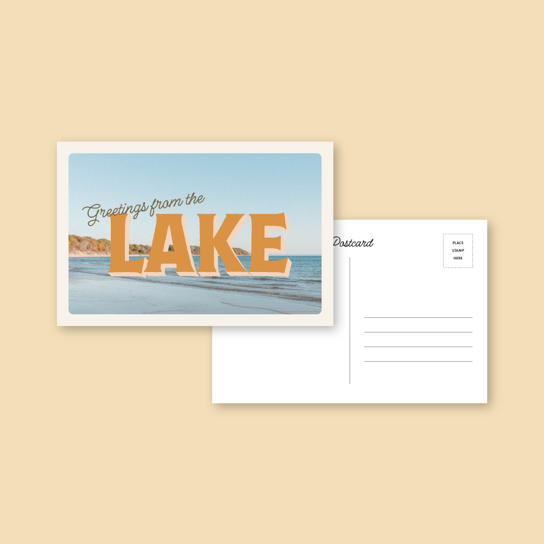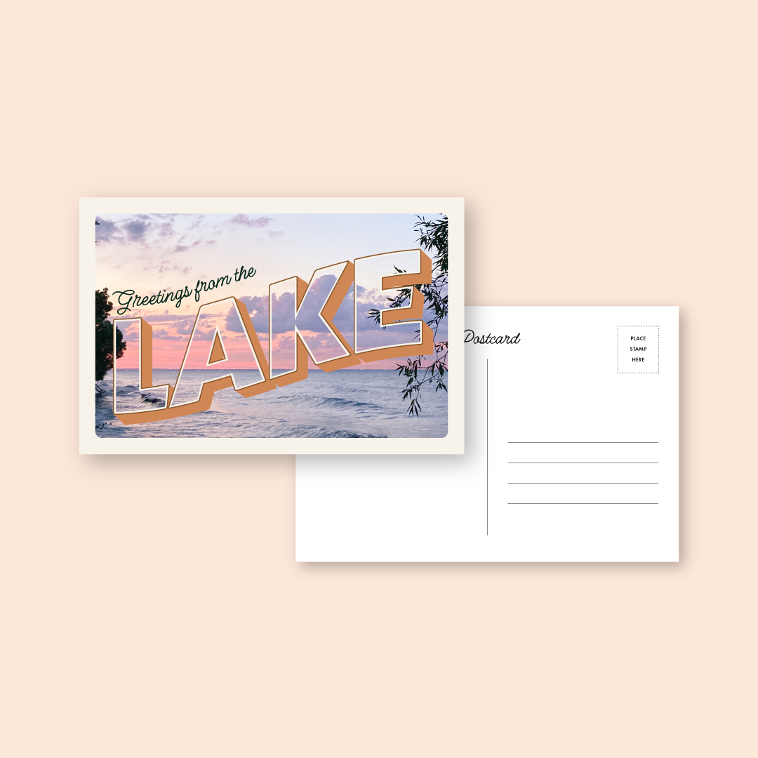 Lake Sunset Postcard (matte cardstock) | No Packaging - $2.25 MSRP $4.50; Clear Sleeve - $2.40 MSRP $4.50, 6 minimum | 4” x 6” (10.16 cm x 15.24 cm)