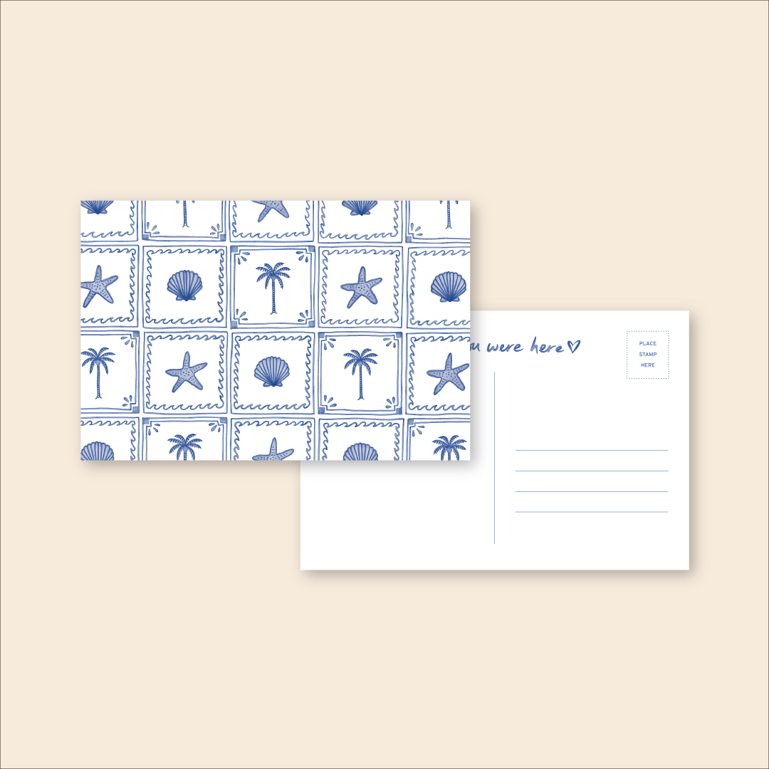 Mediterranean Tile Postcard (natural texture, recycled cardstock) | No Packaging - $2.25 MSRP $4.50; Clear Sleeve - $2.40 MSRP $4.50, 6 minimum | 4” x 6” (10.16 cm x 15.24 cm)