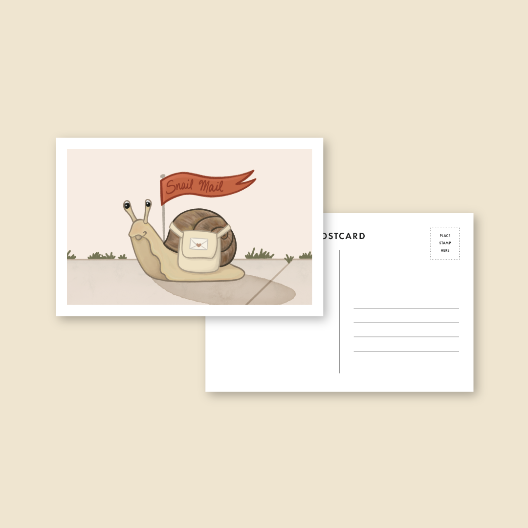 Snail Mail Postcard (natural texture, recycled cardstock) | No Packaging - $2.25 MSRP $4.50; Clear Sleeve - $2.40 MSRP $4.50, 6 minimum | 4” x 6” (10.16 cm x 15.24 cm)