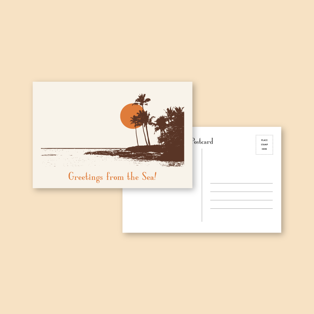 Beach Postcard (matte cardstock) | No Packaging - $2.25 MSRP $4.50; Clear Sleeve - $2.40 MSRP $4.50, 6 minimum | 4” x 6” (10.16 cm x 15.24 cm)